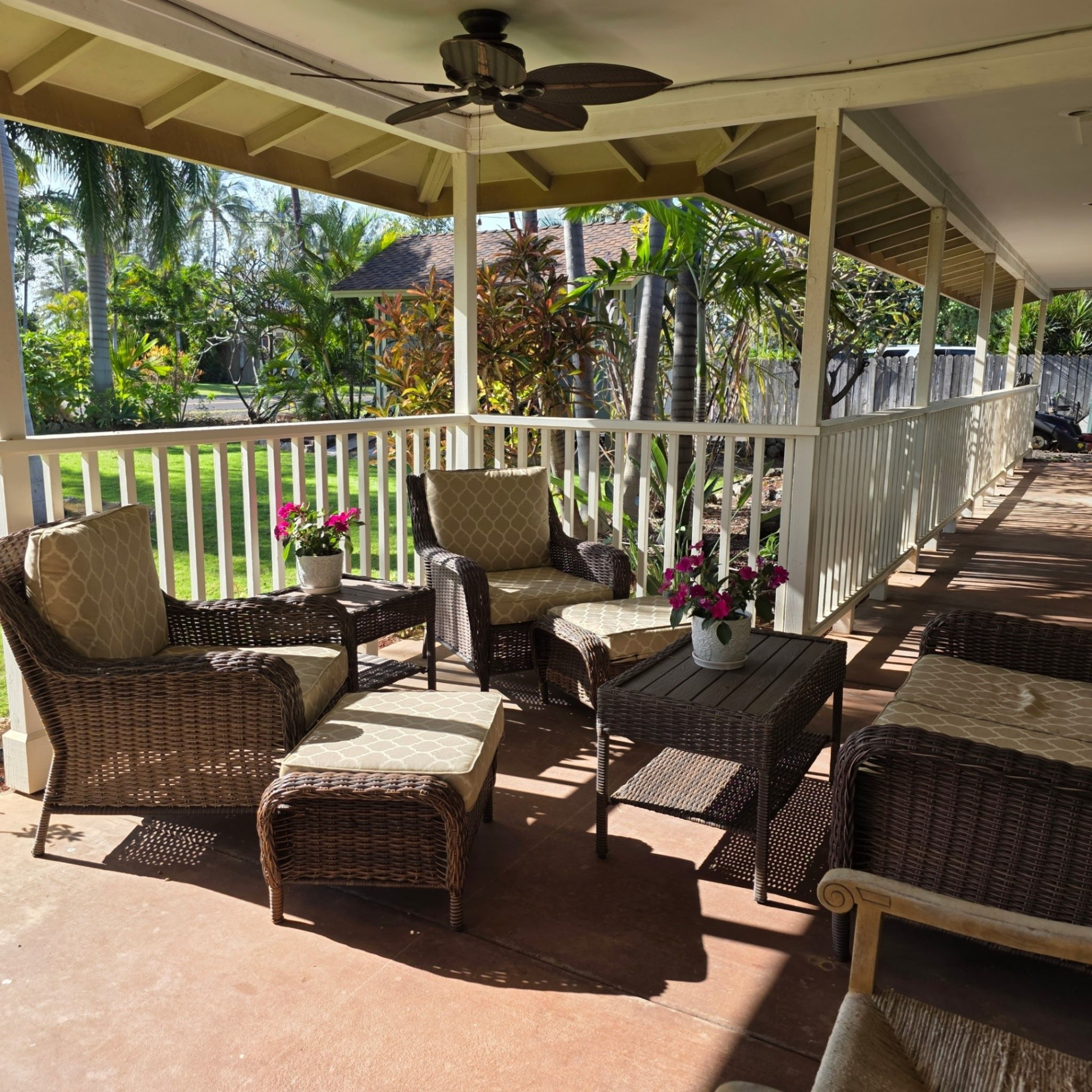 Garden Suite - Beautiful main floor bedroom suite overlooks gorgeous flowers and lush tropical landscaping. Suite includes a queen bed, sitting area, A/C, ceiling fan and TV. Private bath features large closet, vanity, and soaking tub/shower combination.