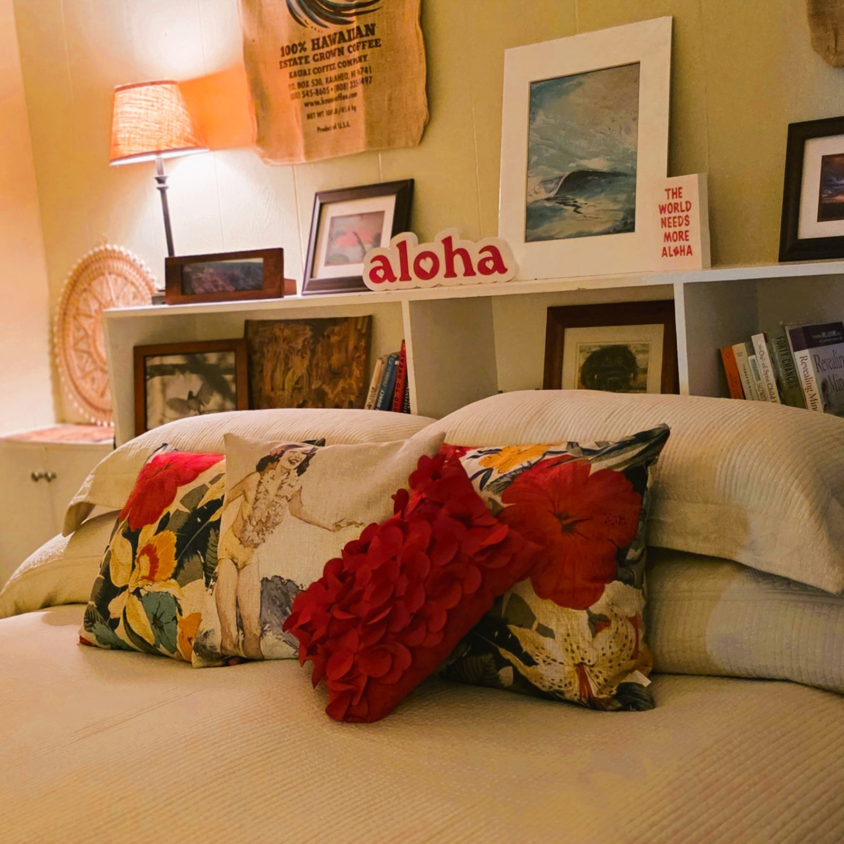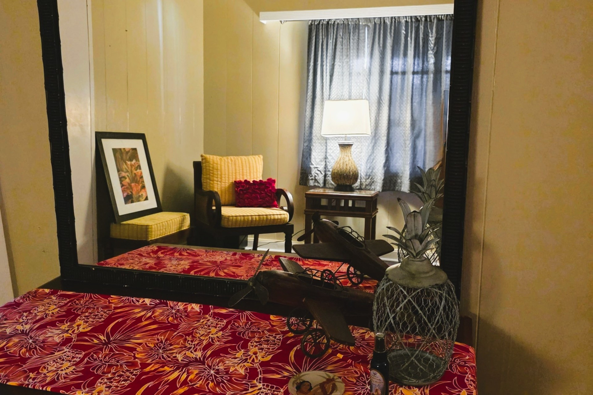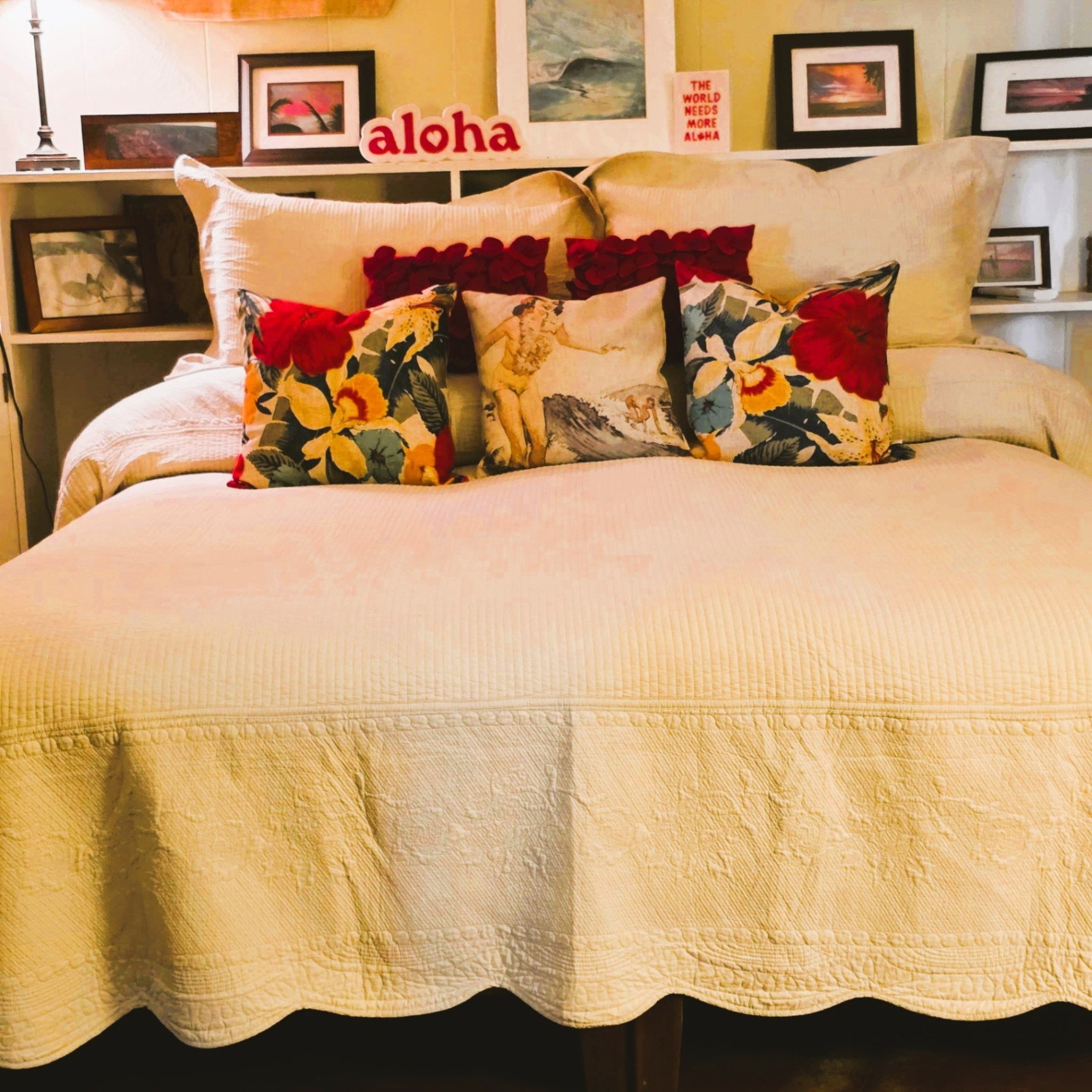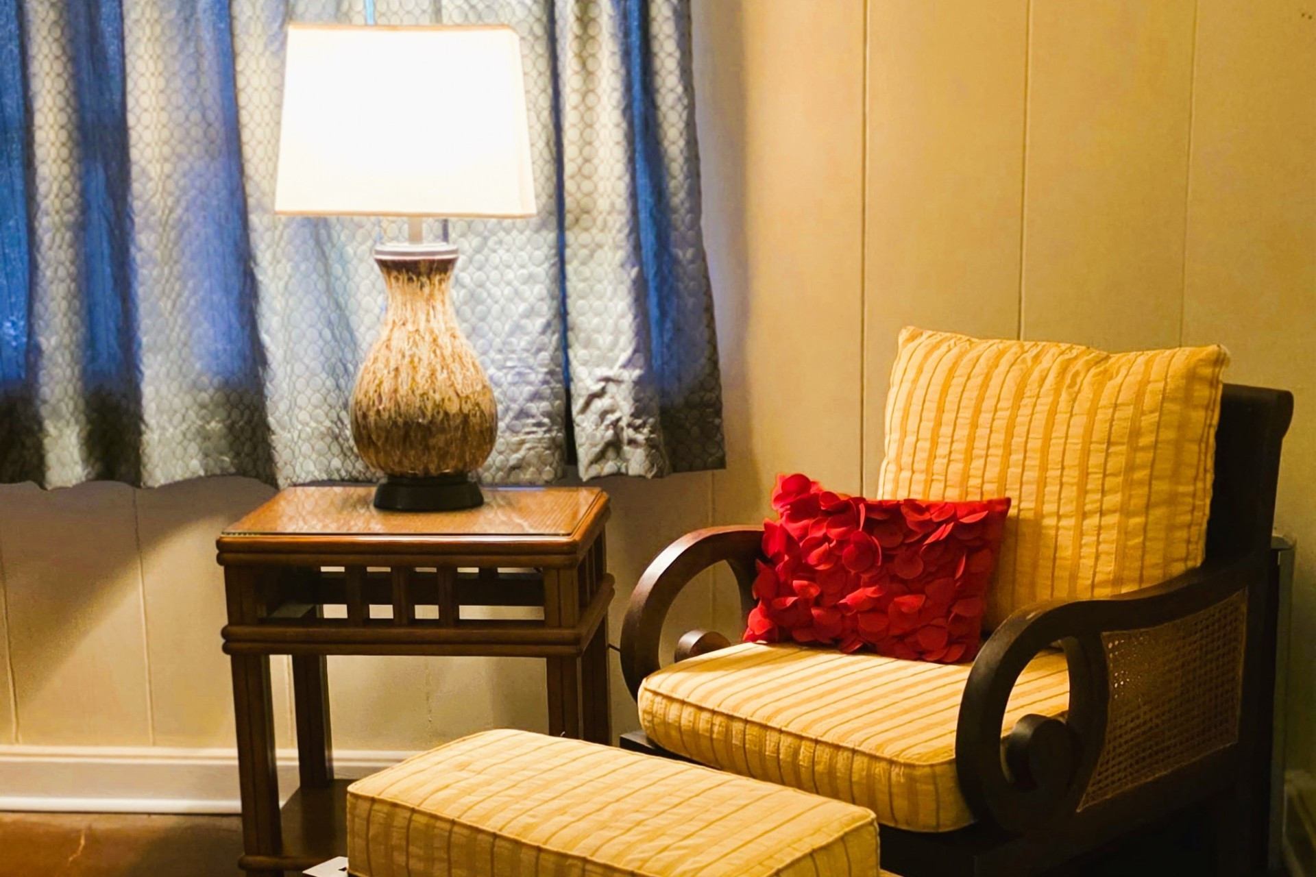 Kauai Suite - This spacious main floor bedroom includes a king (or split twin) setup, private sitting area, large closet, vanity, and A/C. Shared bath with Pool Suite.